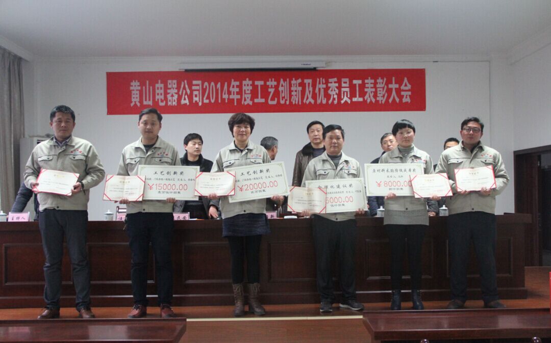2014年3月4日上午黃山電器公司在四樓會議室召開了“2014年度工藝創(chuàng)新暨優(yōu)秀員工表彰大會”,并邀請縣經信委領導汪光輝參加。會上,汪杏娟、鄭春鳴同志分別獲得了“2014年度工藝創(chuàng)新獎”,葉民強同志獲得了“2014年度合理化建議獎”,王納同志獲得了“原材料采購降低成本獎”。同時芯片一部擴散、腐