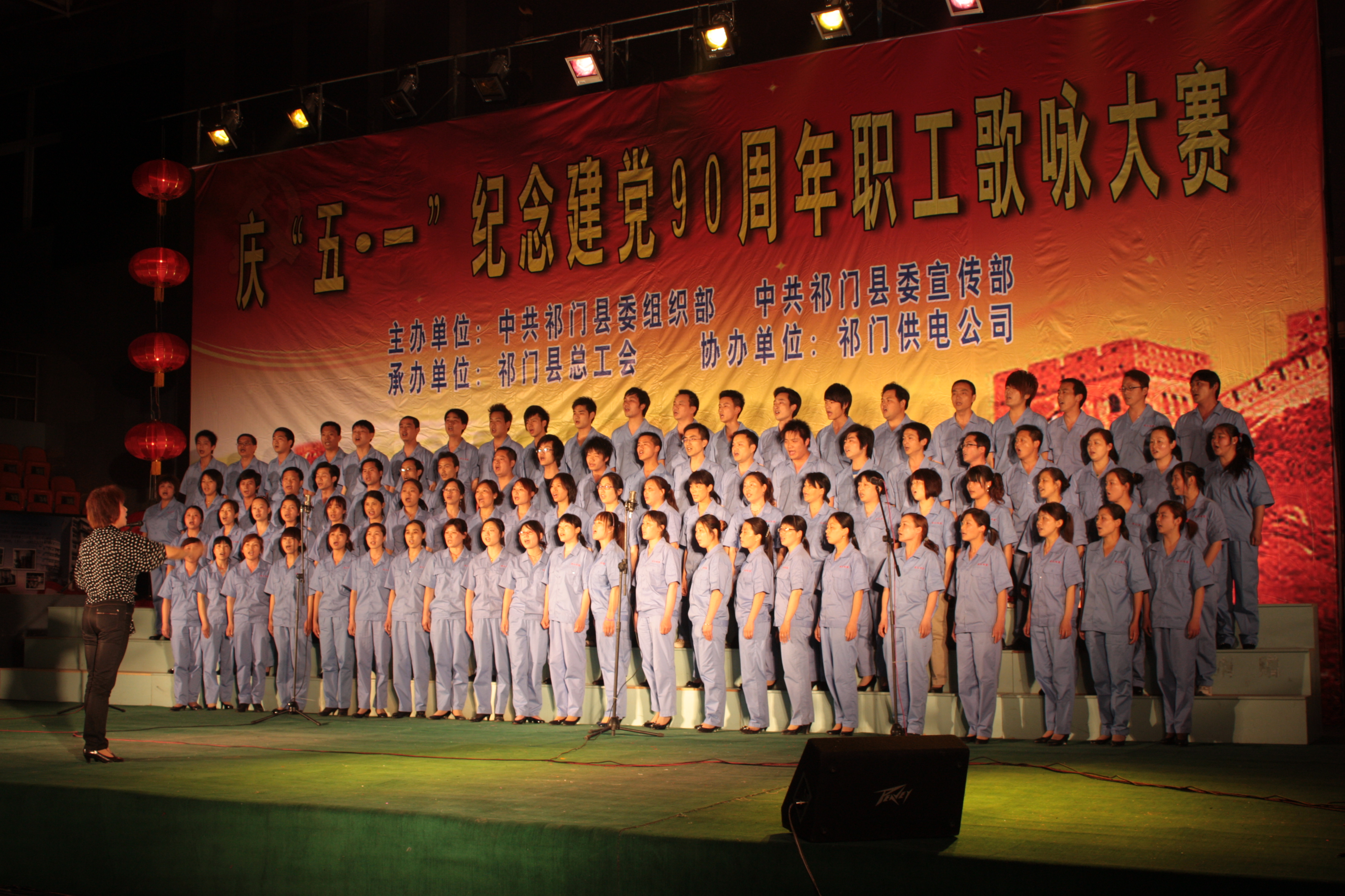 為慶?!拔濉ひ弧眹?guó)際勞動(dòng)節(jié),喜迎中國(guó)共產(chǎn)黨成立九十周年,豐富公司廣大職工的精神文化生活,充分展示公司職工的風(fēng)采,大力營(yíng)造文明和諧、團(tuán)結(jié)奮進(jìn)的濃厚氛圍。公司合唱團(tuán)于四月二十八日晚參加了祁門縣慶“五·一”暨紀(jì)念建黨90周年職工歌詠大賽活動(dòng)。經(jīng)過(guò)專家評(píng)委的現(xiàn)場(chǎng)打分評(píng)選,我公司合